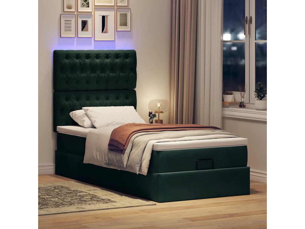 Multidom Osmanský rám postele s matracmi tmavozelená 100x200 cm zamat