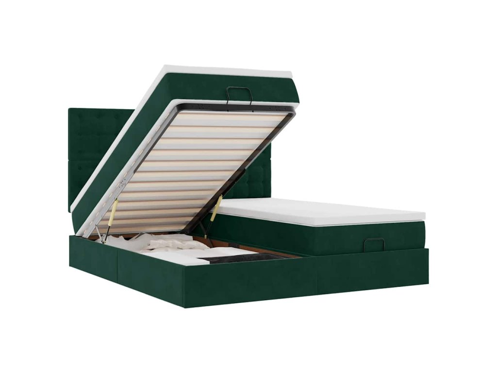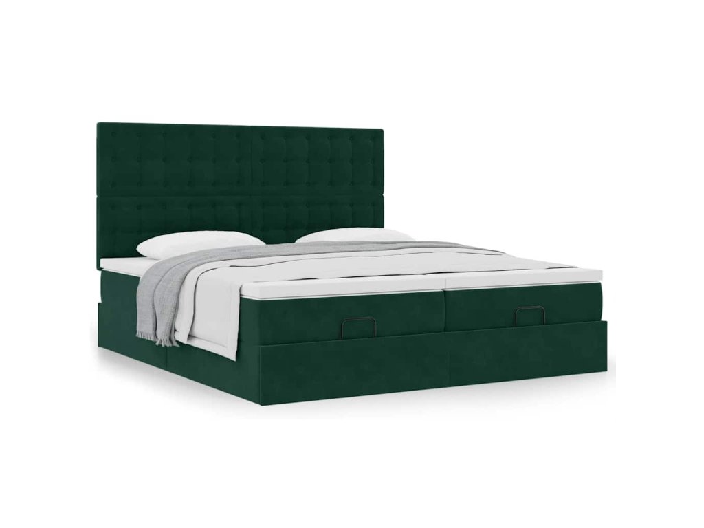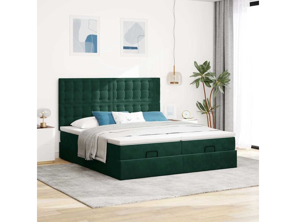 Multidom Osmanský rám postele s matracmi tmavozelená 200x200 cm zamat