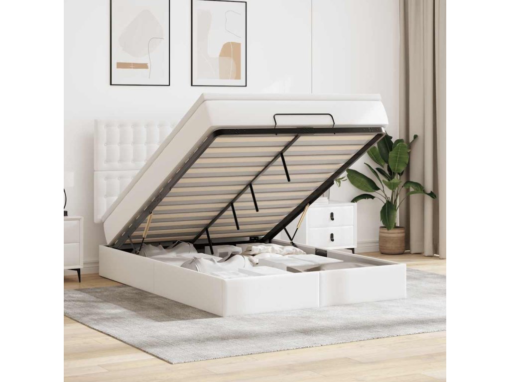 Multidom Osmanský rám postele s matracom biela 140x200 cm umelá koža