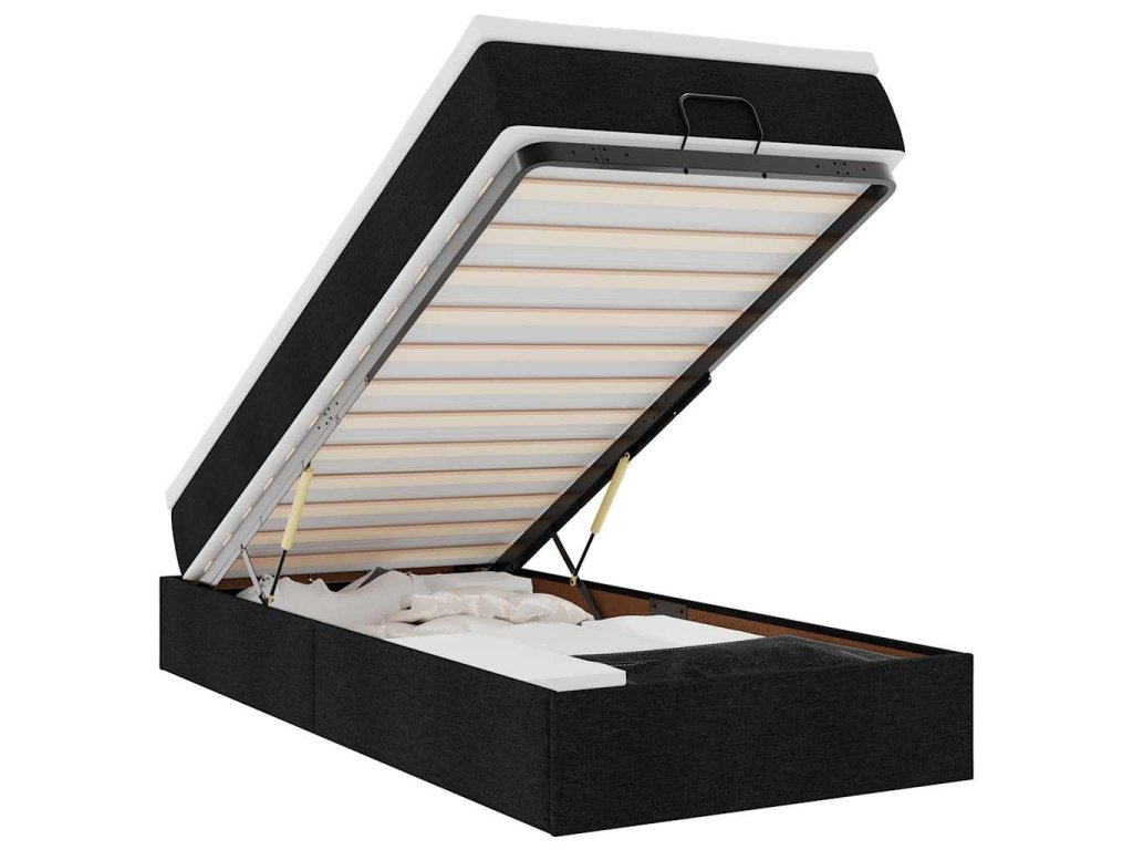 - Veľký úložný priestor pod posteľou: Vďaka hydraulickému zdvíhaciemu mechanizmu ponúka rám postele dostatok úložného priestoru pod posteľou, čím sa maximalizuje priestor bez toho, aby zaberal ďalšiu podlahovú plochu. Jednoduchým potiahnutím rukoväte sa lamelová základňa hladko zdvihne, čo vám umožní získať veci rýchlo a bez námahy.