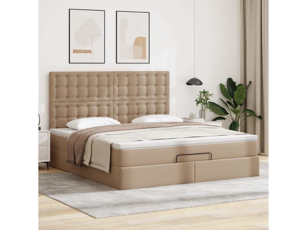 Multidom Osmanský rám postele s matracom kapučínový 160x200cm umelá koža