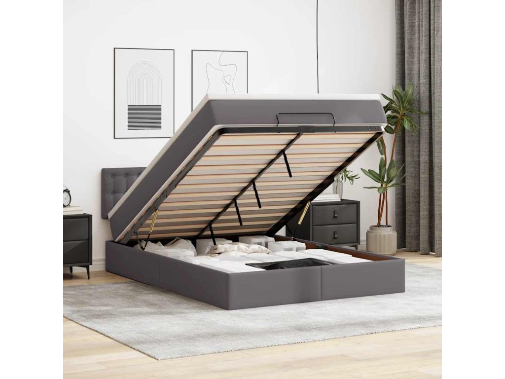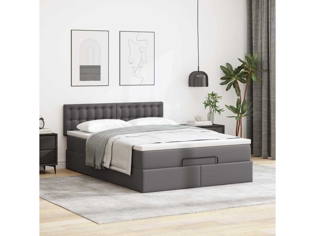 Multidom Osmanský rám postele s matracom sivá 140x200 cm umelá koža