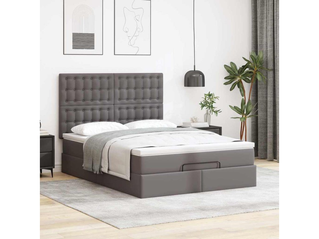 Multidom Osmanský rám postele s matracom sivá 140x200 cm umelá koža