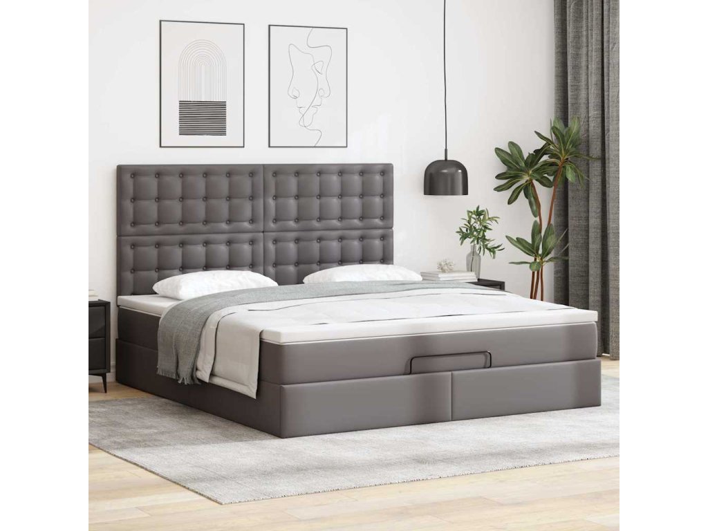 Multidom Osmanský rám postele s matracom sivá 160x200 cm umelá koža