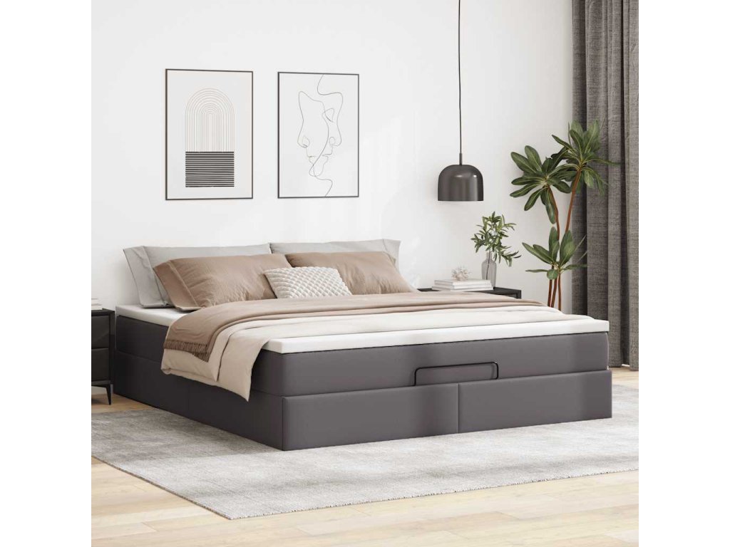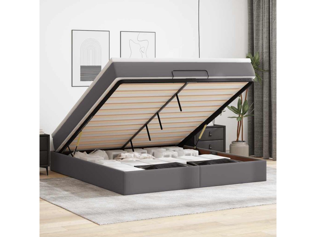 Multidom Osmanský rám postele s matracom sivá 180x200 cm umelá koža
