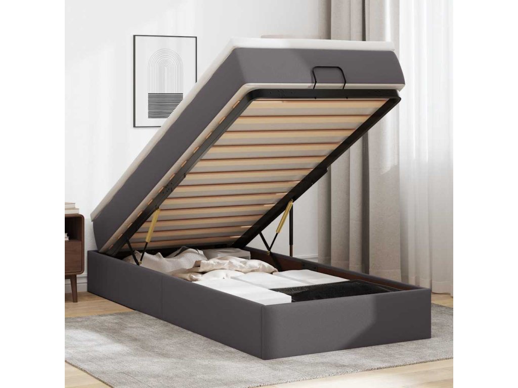 Multidom Osmanský rám postele s matracom sivá 90x200 cm umelá koža