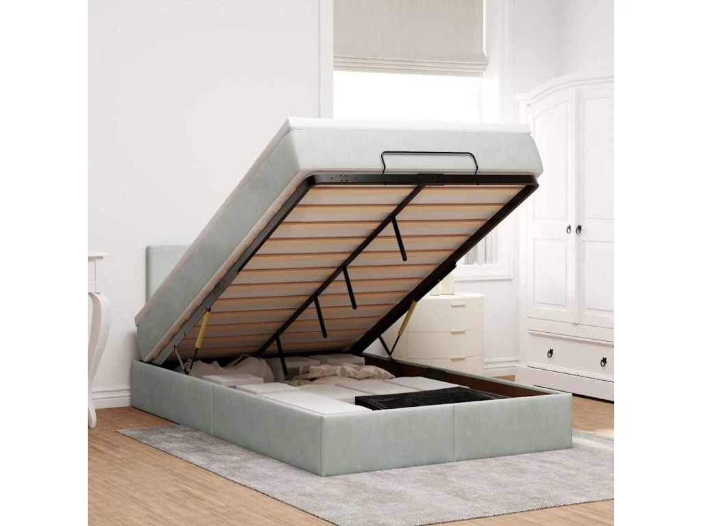 - Veľký úložný priestor pod posteľou: Vďaka hydraulickému zdvíhaciemu mechanizmu ponúka rám postele dostatok úložného priestoru pod posteľou, čím sa maximalizuje priestor bez toho, aby zaberal ďalšiu podlahovú plochu. Jednoduchým potiahnutím rukoväte sa lamelová základňa hladko zdvihne, čo vám umožní získať veci rýchlo a bez námahy.