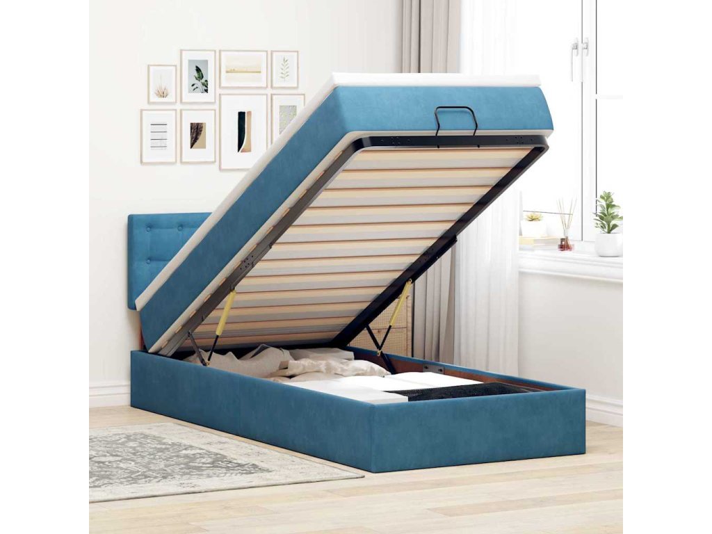 Multidom Osmanský rám postele s matracom tmavomodrá 100x200 cm zamat