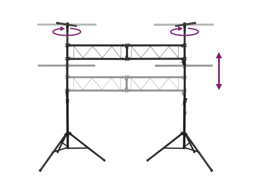 - Multifunkčný svetelný mostík: Osvetľovací stojan je riešením pre umiestnenie svetelnej a efektovej techniky. Dá sa kombinovať s rôznymi nástrojmi, ako sú LED reflektory, aby sa vytvorila pôsobivá atmosféra na pódiu.