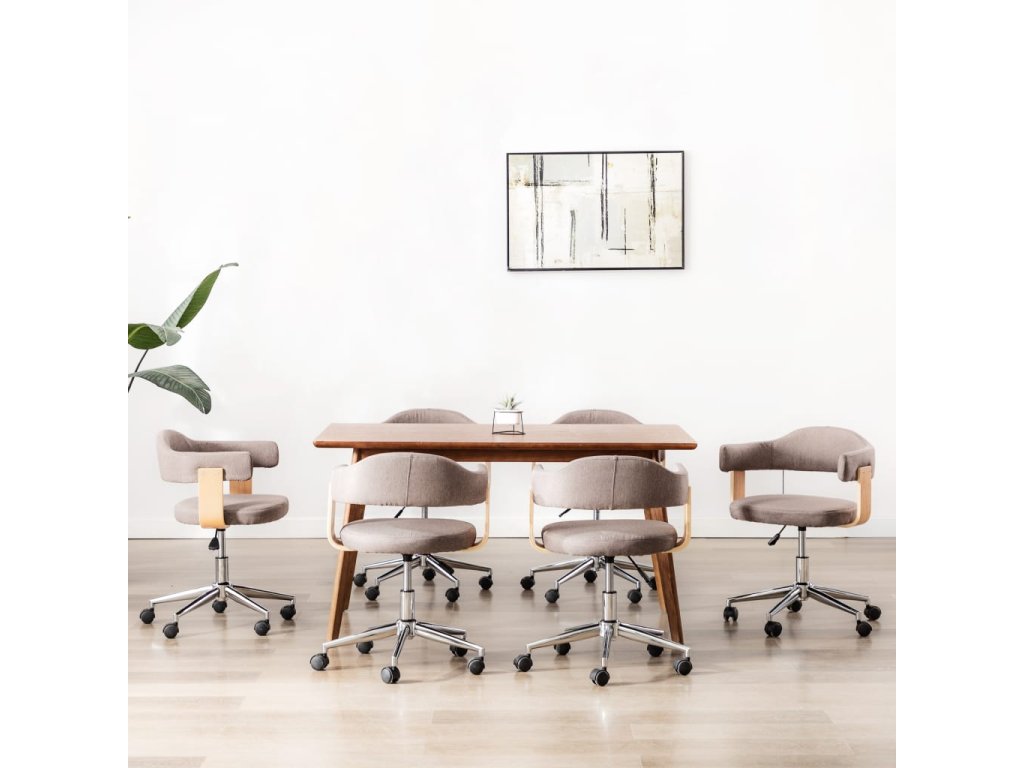 Multidom Otočné jedálenské stoličky 6ks,sivohnedé, ohýbané drevo a látka