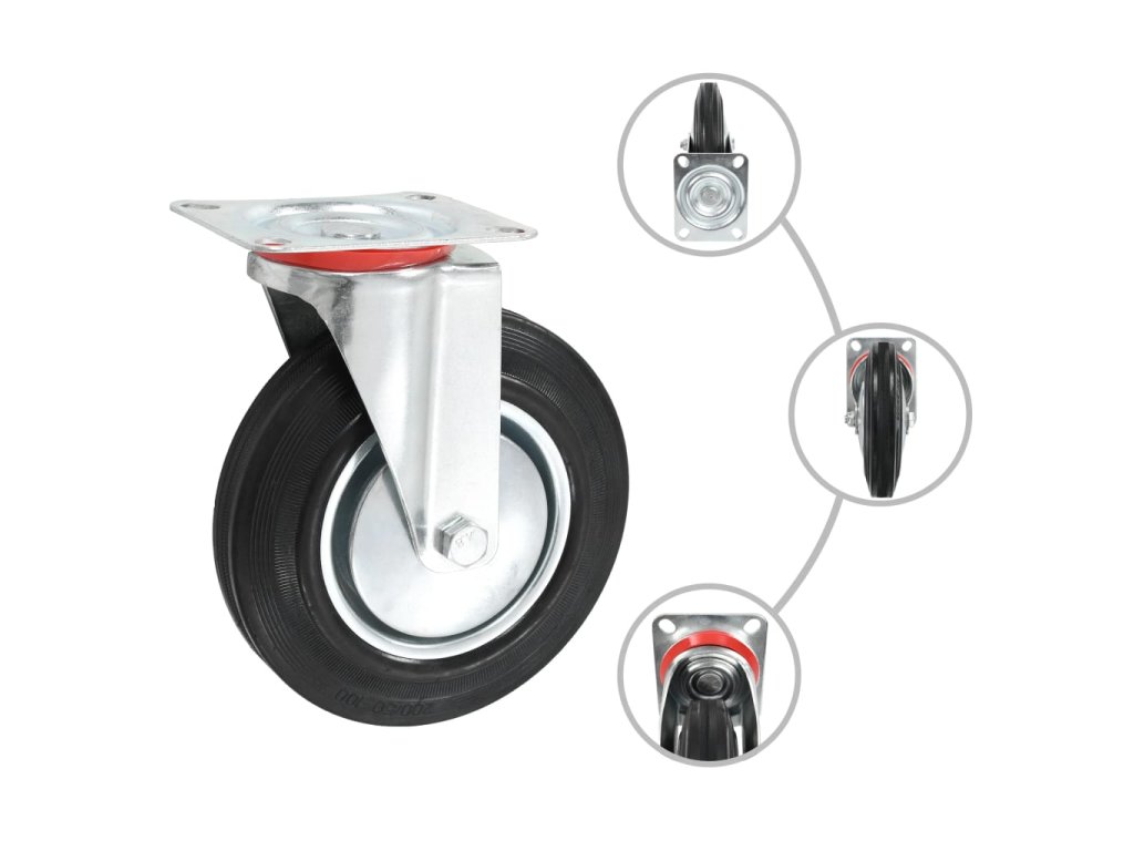 Tieto kolieska sú vyrobené z gumy, ktorá sa vyznačuje dobrou odolnosťou voči nárazom a vibráciám, čo umožňuje ich plynulý a tichý chod. Navyše ich mäkké povrchy účinne chránia vašu podlahu pred poškriabaním. Okrem toho je pozinkovaný železný rám vysoko odolný voči korózii a zvyšuje tak odolnosť a trvácnosť koliesok. Každé koliesko má maximálnu nosnosť až 180 kg.