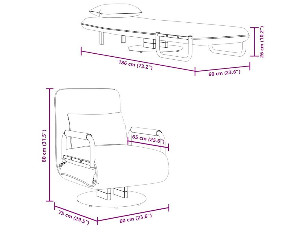 Toto multifunkčné kreslo, ktoré sa dá nastaviť do niekoľkých polôh na sedenie a ležanie, stelesňuje kombináciu pohodlia a praktického dizajnu a predstavuje skvelý doplnok do domácnosti. Otočné kreslo sa dá jednoducho premeniť na leňošku, sklápacie kreslo či rozkladaciu pohovku, a preto je ako stvorené do menších priestorov, no zíde sa vám aj v prípade, keď u vás budú chcieť prespať neočakávaní hostia.