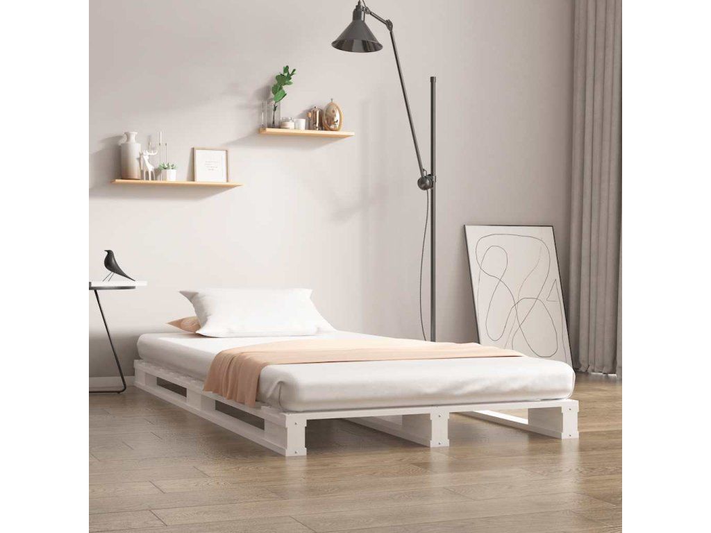 Multidom Paletová posteľ, biela 100x200 cm, borovicový masív