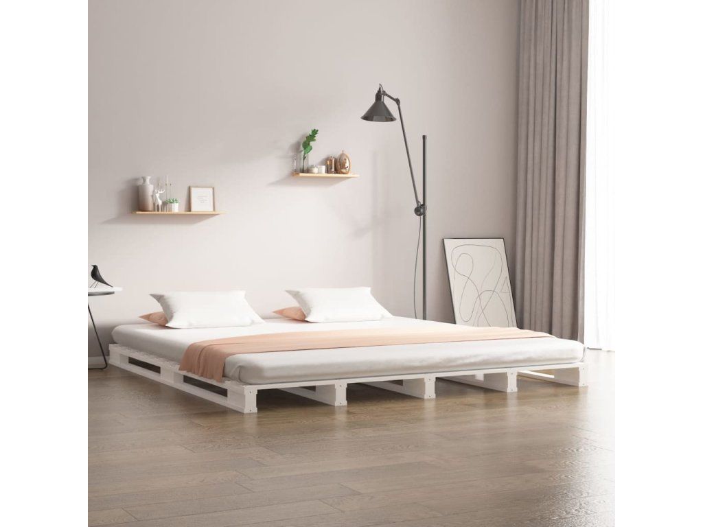 Multidom Paletová posteľ, biela 120x190 cm, borovica, malé dvojlôžko