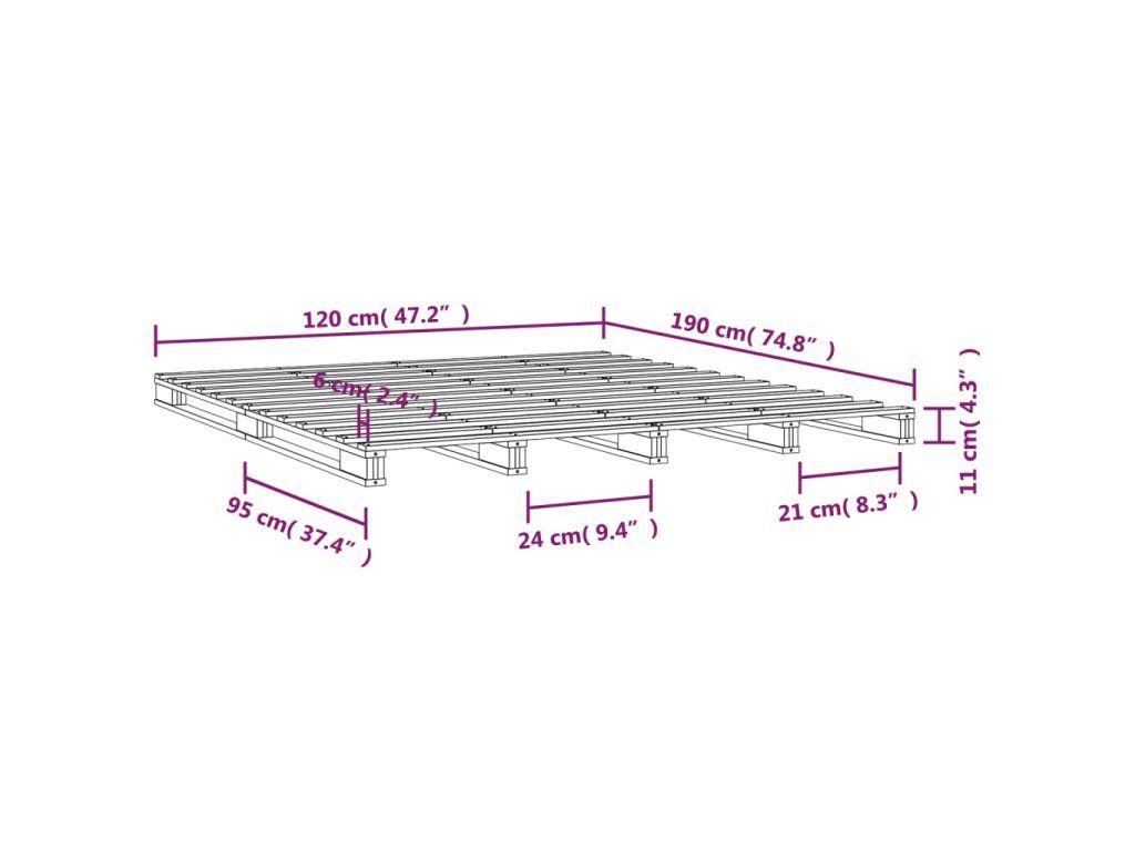 Multidom Paletová posteľ, sivá 120x190 cm, borovica, malé dvojlôžko