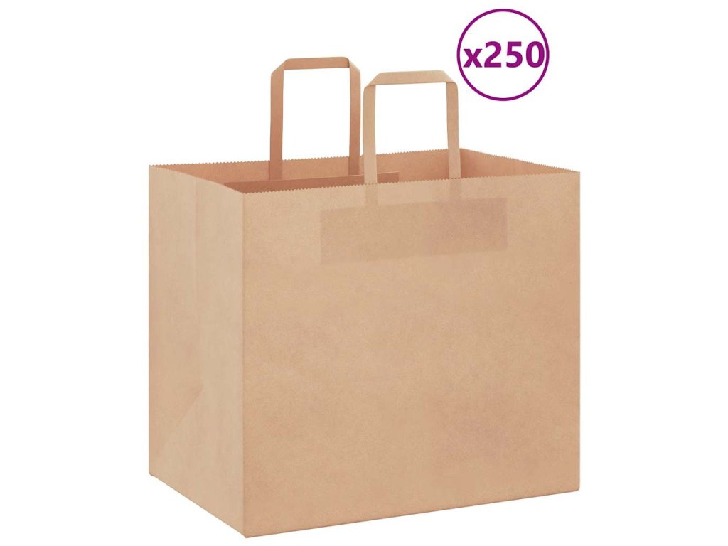 Multidom Papierové tašky 250 ks s rúčkami, hnedá, 32x22x28 cm