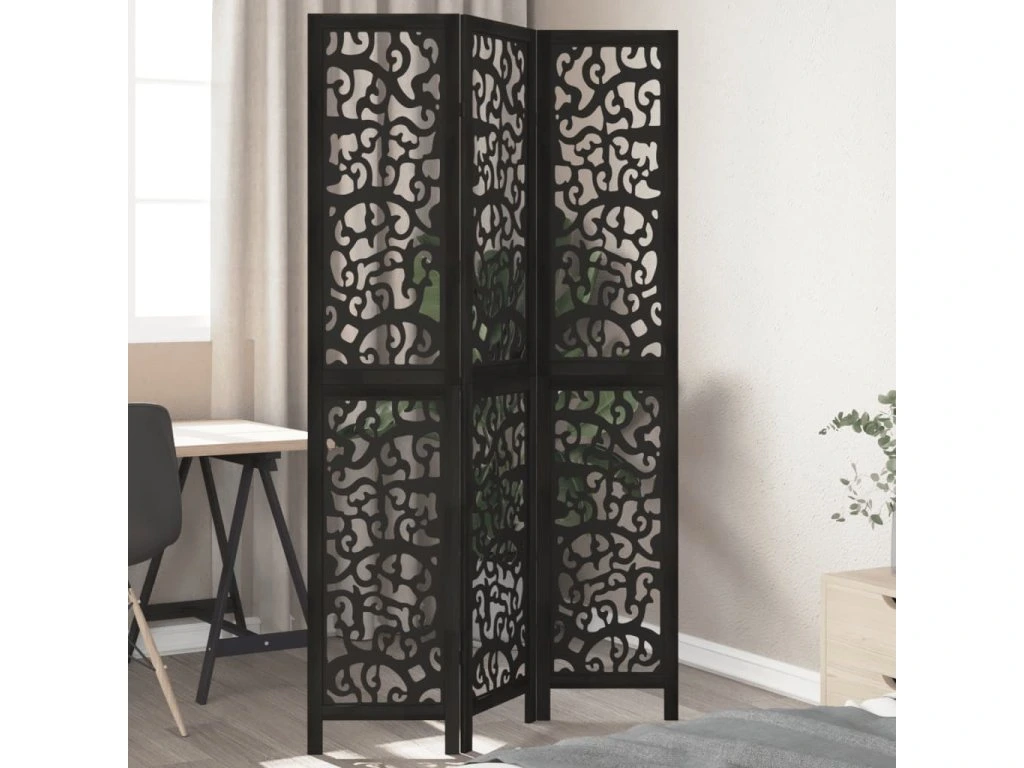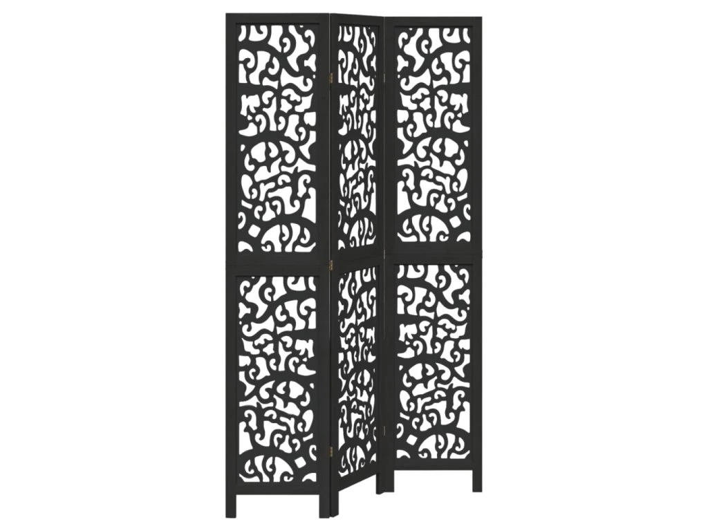 Multidom Paraván, 3 panely, čierny, masívne drevo paulovnie