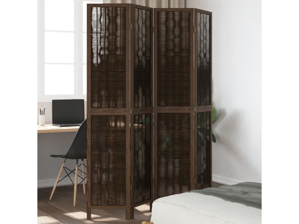 Multidom Paraván 4 panely tmavohnedý masívne drevo paulownie