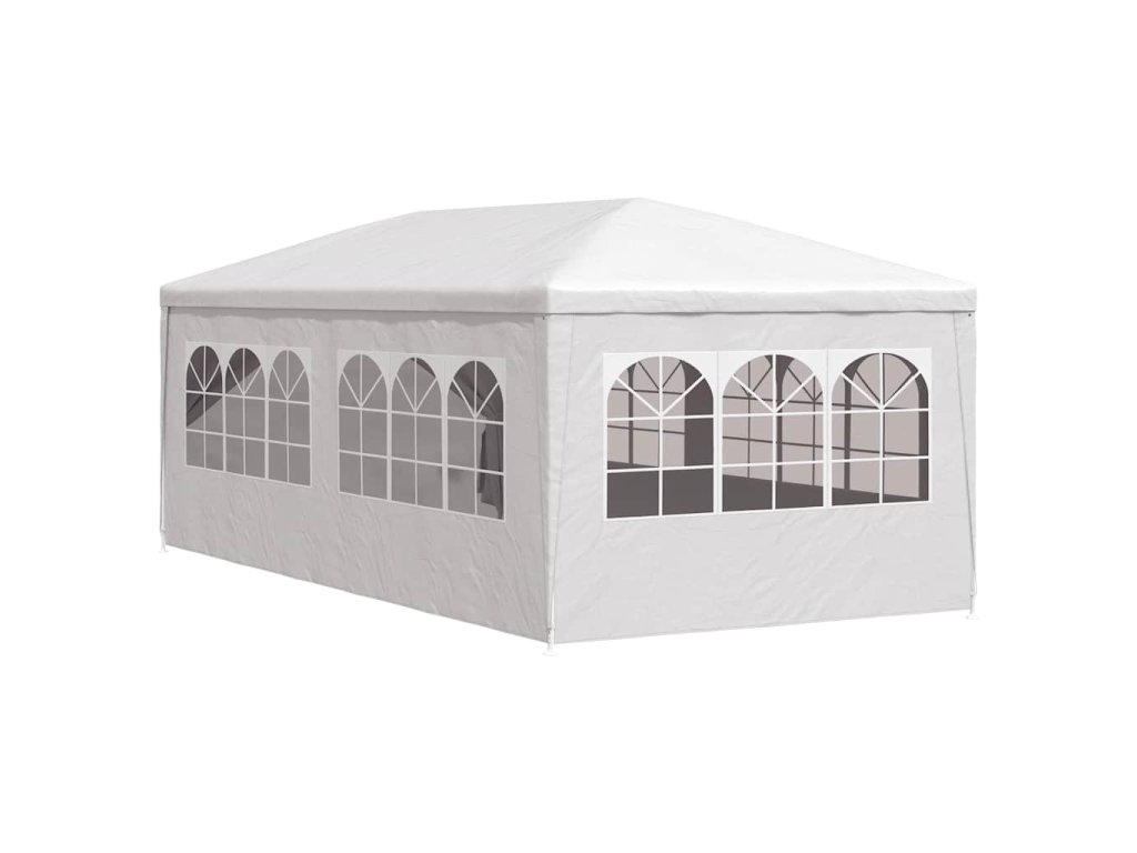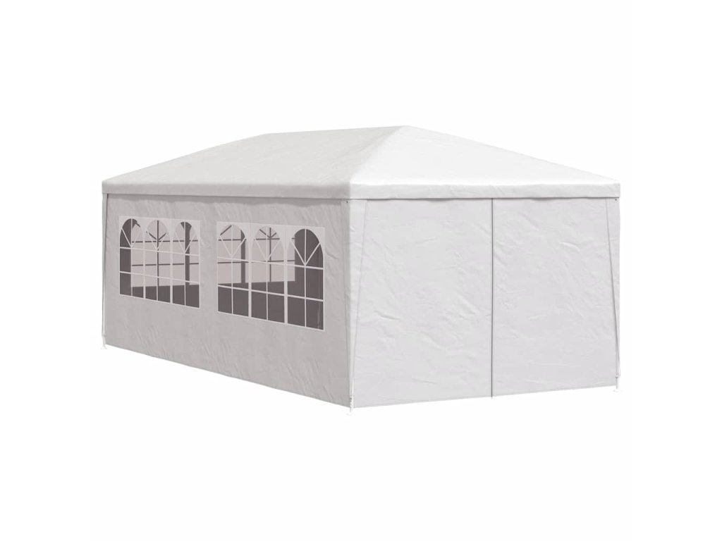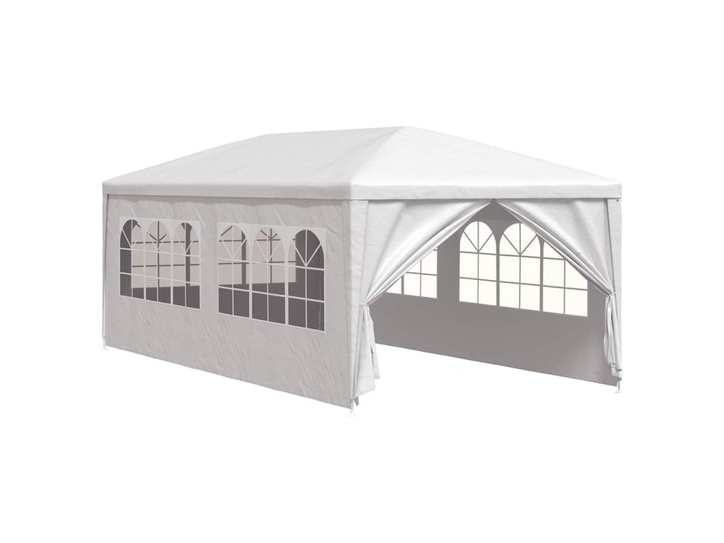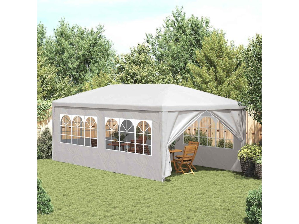 Záhradný stan je vyrobený z polyetylénového materiálu odolného voči UV žiareniu a vode, a preto je veľmi praktický na vonkajšie použitie. Rám je vyrobený z ocele odolnej voči hrdzi, vďaka čomu je vonkajšia strieška stabilná a odolná. Párty stan má bočné panely, každý s ozdobnými okienkami, a 1 dverový panel so zipsom pre jednoduchý vstup. Záhradný altánok sa ľahko montuje.