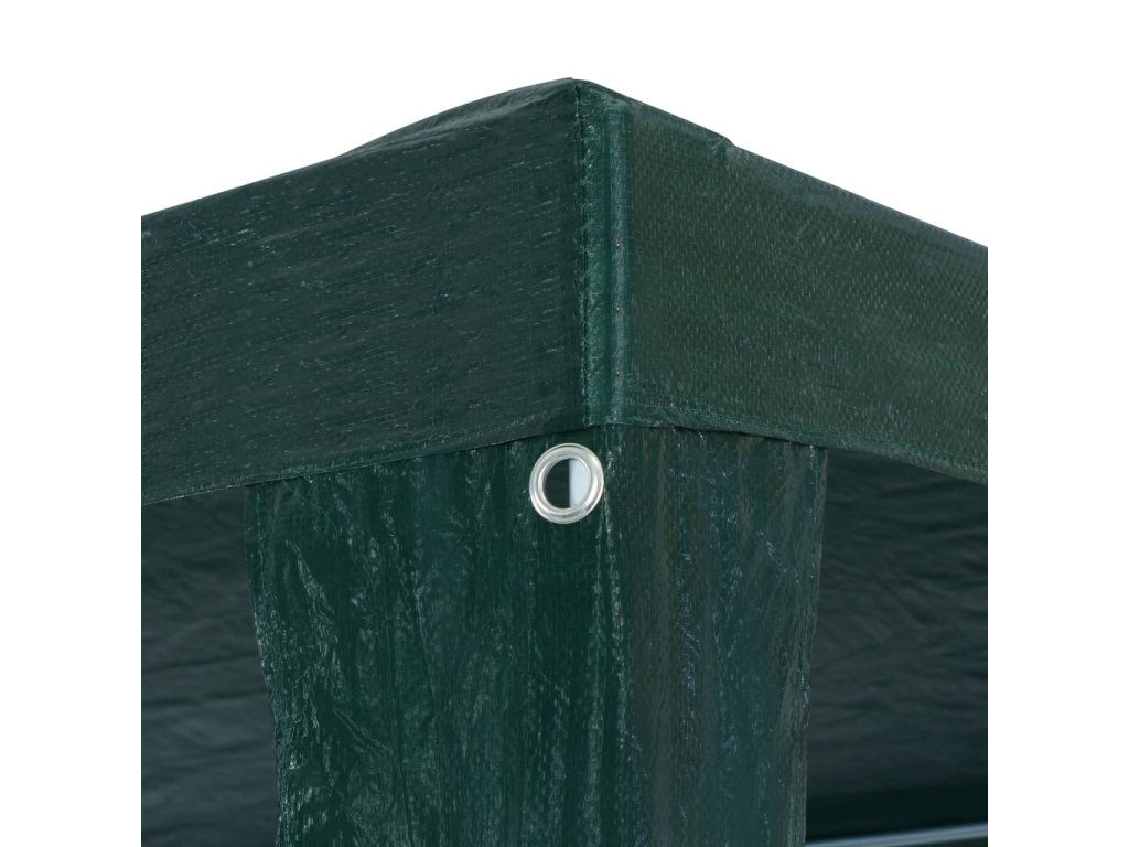 Párty stan je vyrobený z polyetylénového materiálu odolného voči UV žiareniu a vode, a preto je veľmi praktický na vonkajšie použitie. Rám je vyrobený z ocele odolnej voči hrdzi, vďaka čomu je vonkajší prístrešok stabilný a odolný. Záhradný altánok sa ľahko montuje.
