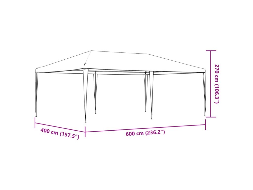 Párty stan je vyrobený z PE odolného voči UV žiareniu a vode, a preto je veľmi praktický na vonkajšie použitie. Rám je vyrobený z odolného železa, vďaka čomu je vonkajšia strieška stabilná a odolná. Záhradný altánok sa ľahko montuje.