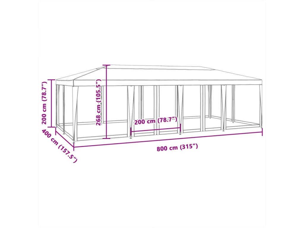 Tento super cool párty stan s pevným železným rámom, vodeodolnou strechou a dvanástimi sieťovanými bočnicami je ideálnym úkrytom pred slnkom.