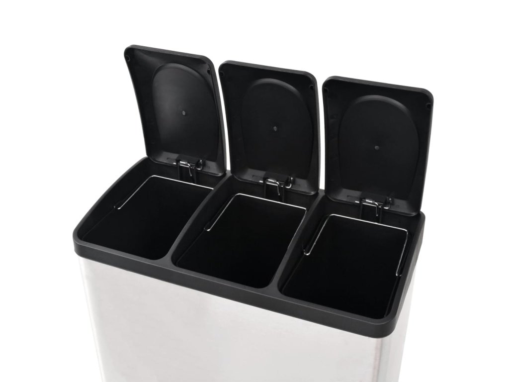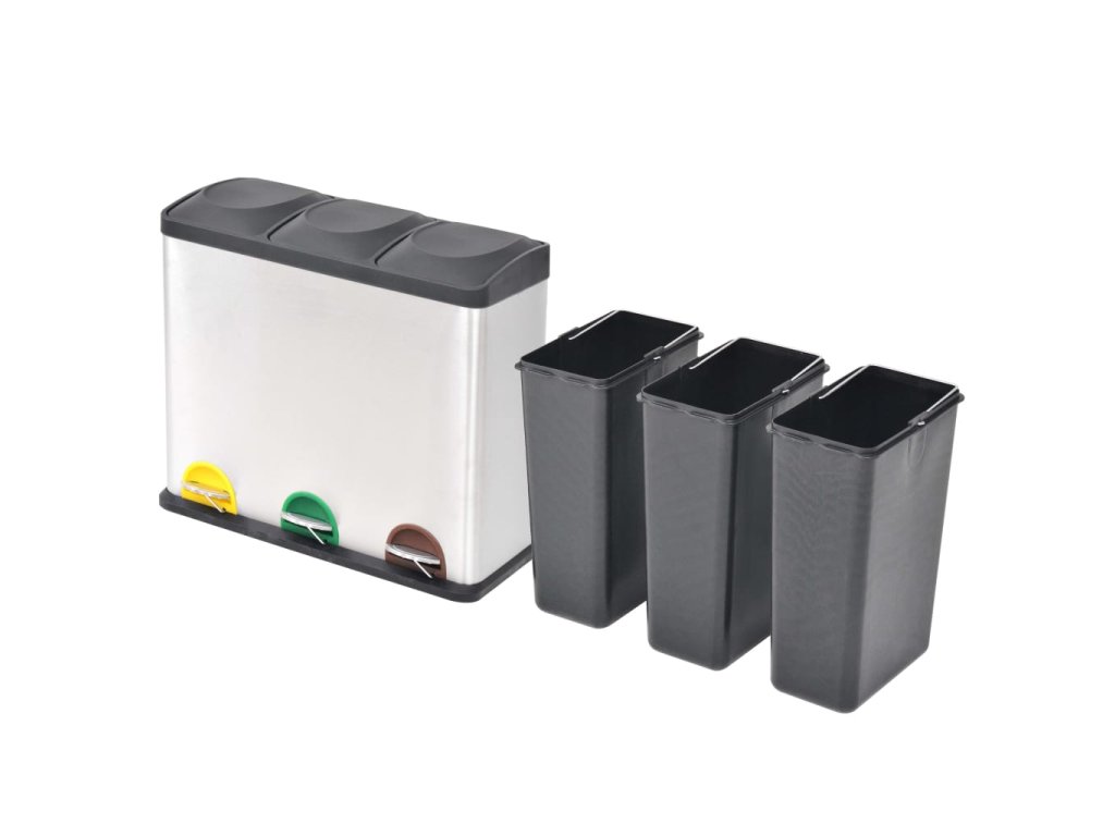 Tento elegantný a praktický pedálový odpadkový kôš na triedený odpad je nevyhnutným zariadením pre vašu kuchyňu, obývaciu izbu, kanceláriu, atď. Odpadkový kôš je vybavený 3 odnímateľnými vnútornými nádobami na triedenie odpadu.