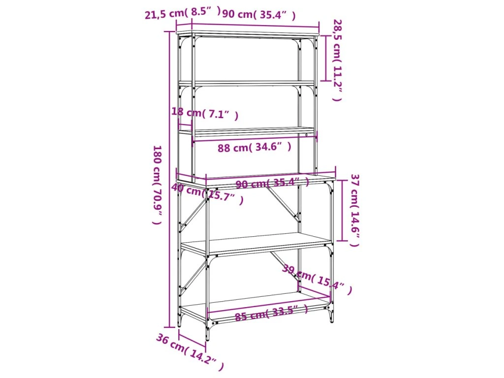 Multidom Pekársky stojan 6-poschodový dzmový dub 90x40x180cm komp. drevo
