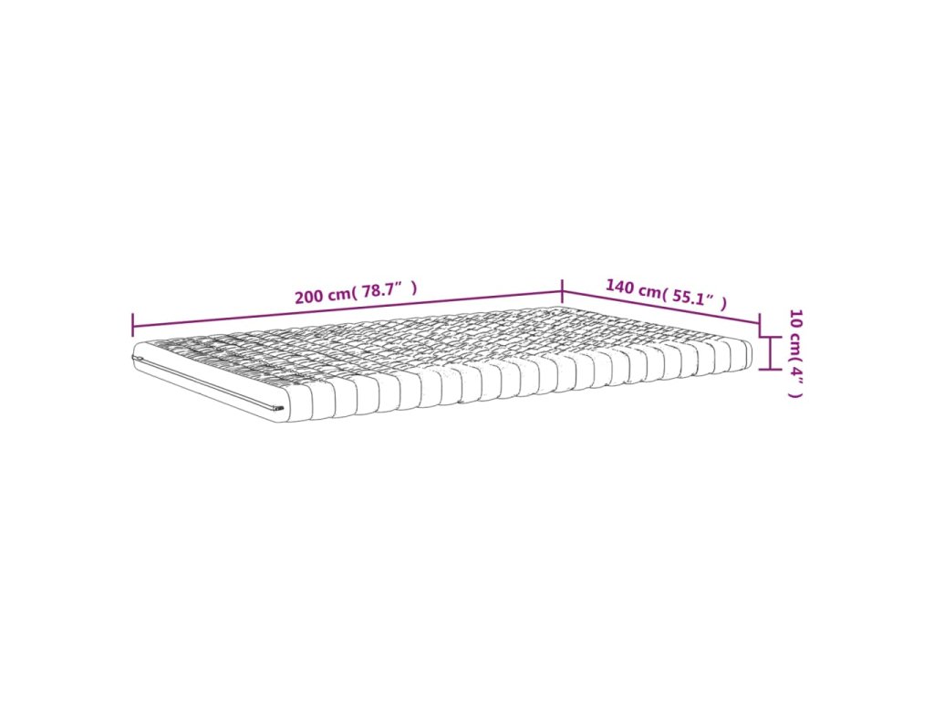 - Celkové rozmery: 140 x 200 x 10 cm (D x Š x H)