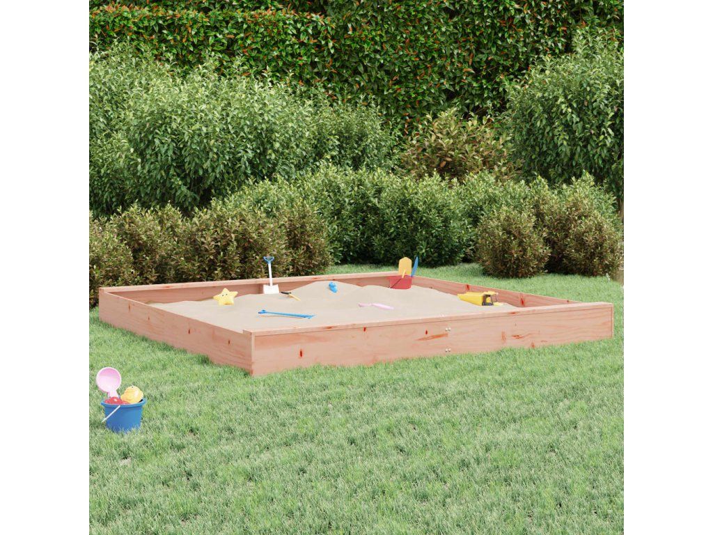 - Masívne douglasové drevo: Masívne douglasové drevo je vysoko odolný typ dreva, ktorý sa dobre hodí do exteriéru. Douglasové drevo je tiež dostatočne pevné na to, aby mohlo fungovať s minimálnou starostlivosťou aj pod vplyvom počasia. Pieskovisko je vyrobené z masívneho douglasového dreva a je pevné a stabilné.