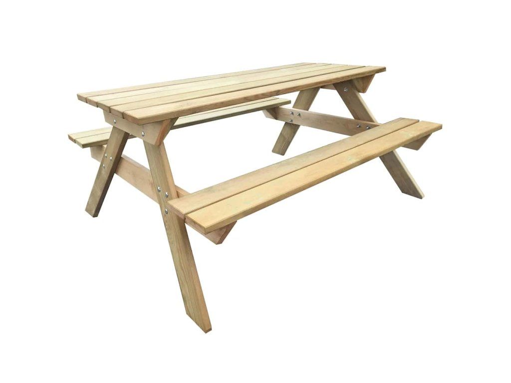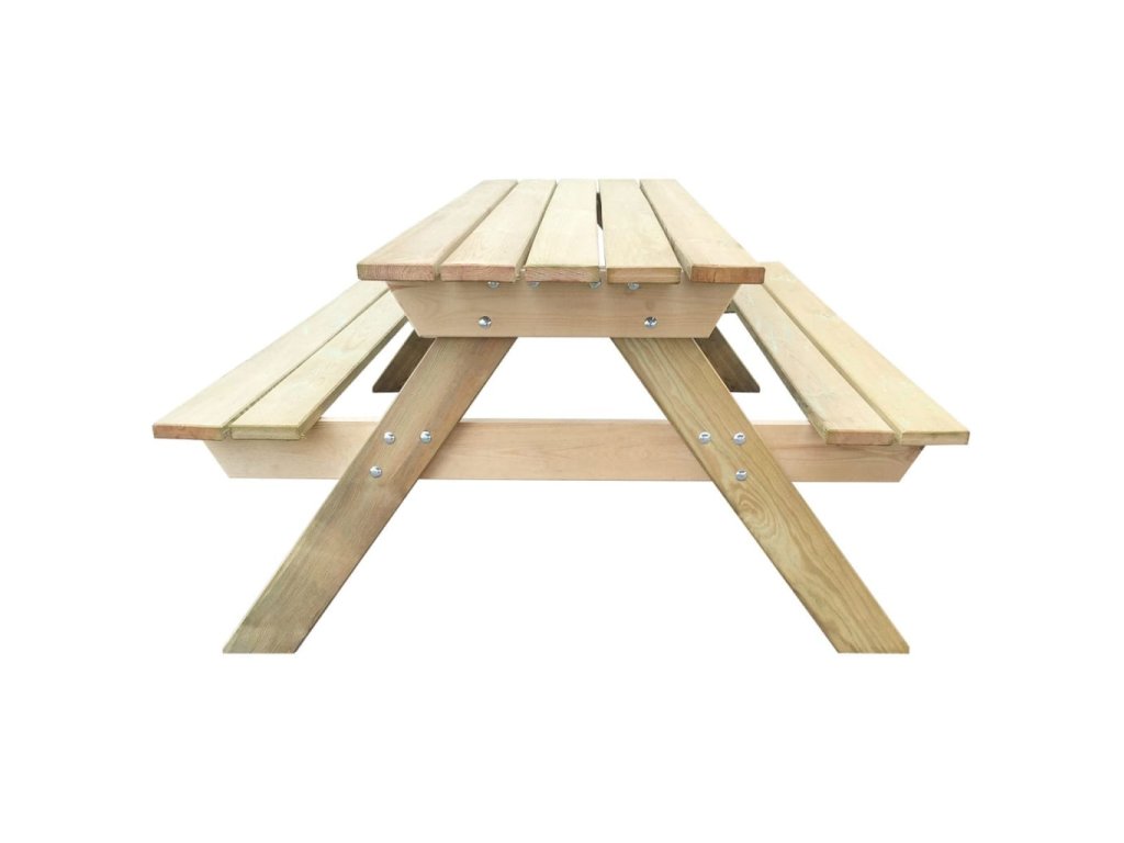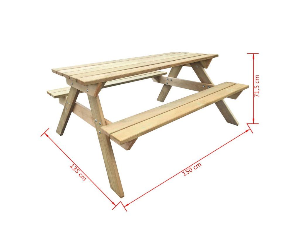 Drevený piknikový stôl je vyrobený z borovicového dreva so zelenou impregnáciou, vďaka čomu je veľmi pevný, trvácny a odolný voči hnilobe.