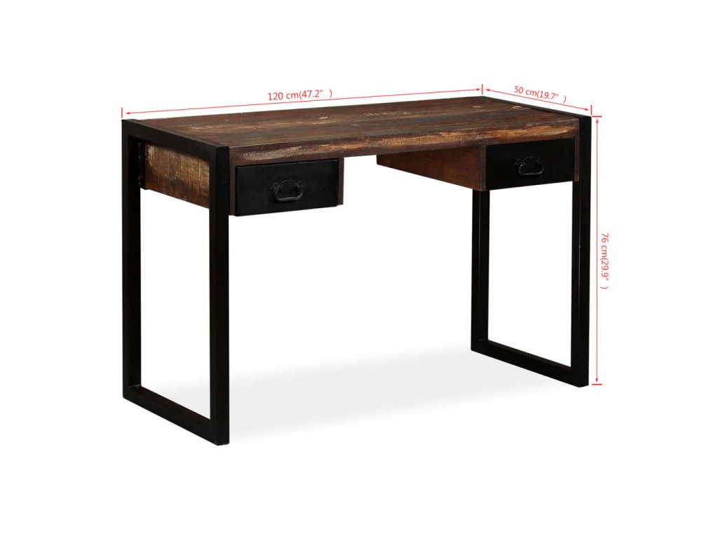 Multidom Písací stôl s 2 zásuvkami, recyklovaný masív 120x50x76 cm