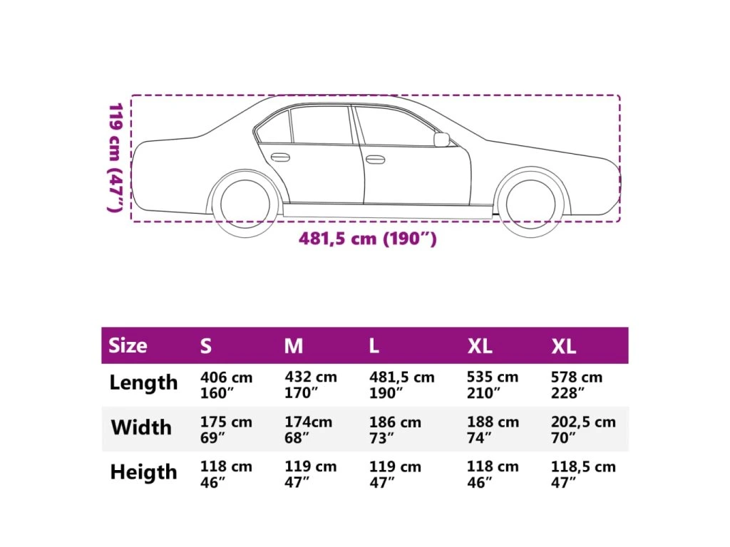 - Vetruodolný dizajn: Elastické okraje zaistia priliehavé uchytenie plachty na auto, zatiaľ čo nastaviteľné popruhy s prackami v spodnej časti ho udržia v bezpečí aj vo veterných dňoch.