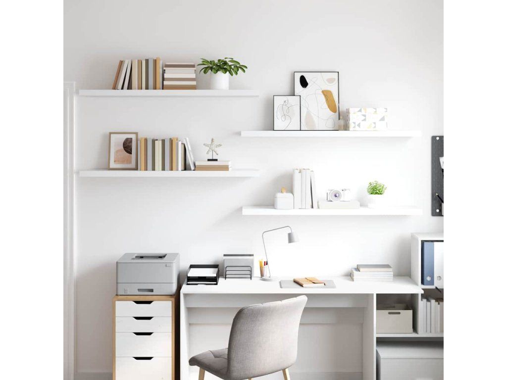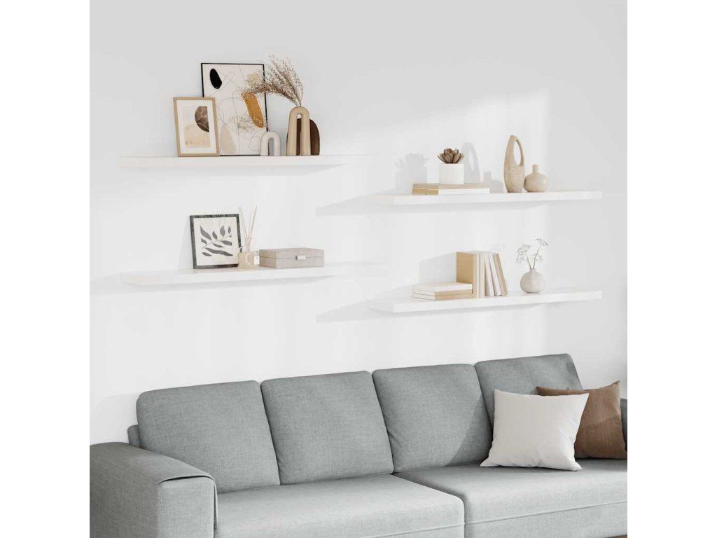 Multidom Plávajúce nástenné police 4 ks, biele 120x23,5x3,8 cm, MDF