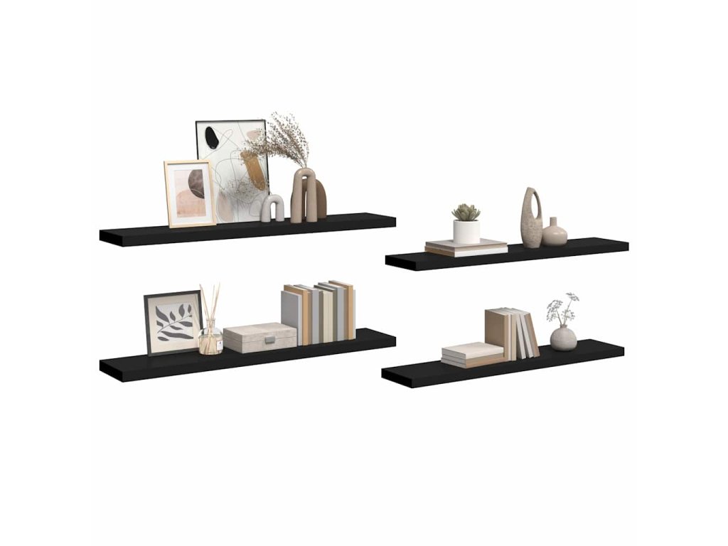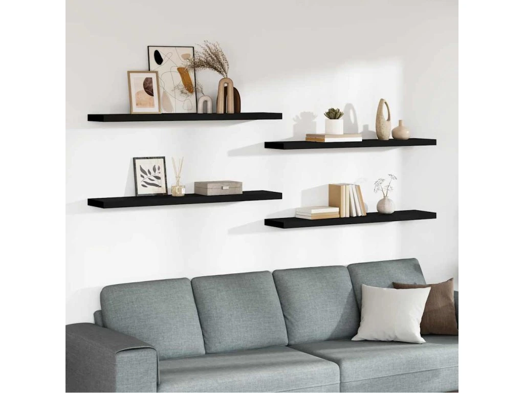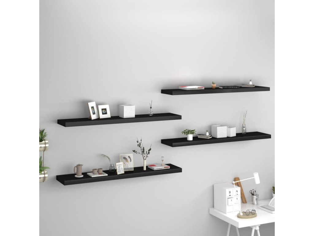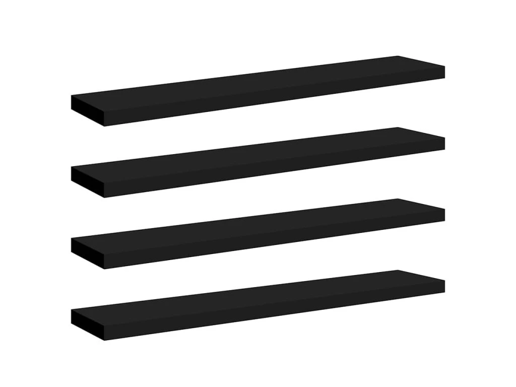 Multidom Plávajúce nástenné police 4 ks, čierne 120x23,5x3,8 cm, MDF