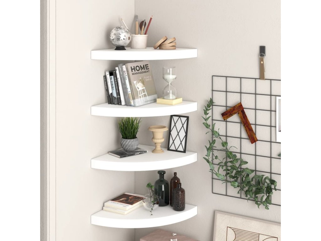 Táto sada 4 štýlových rohových políc predstavuje ideálne miesto na vystavenie vašich obľúbených kníh, dekorácií, fotiek, ocenení a podobne.