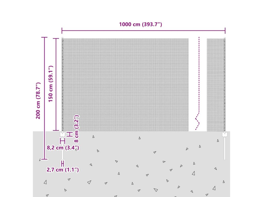 - Celkové rozmery: 1000 x 2,7 x 150 cm (D x Š x V)