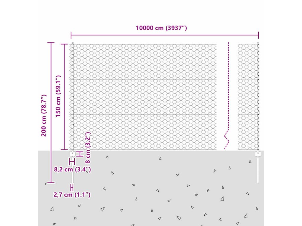 - Celkové rozmery: 10000 x 2,7 x 150 cm (D x Š x V)
