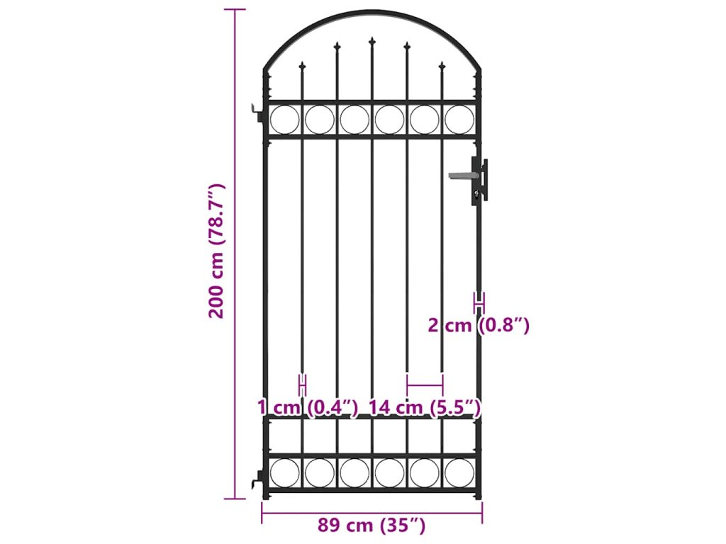 Multidom Plotová brána s oblúkom, oceľ 89x200 cm, čierna