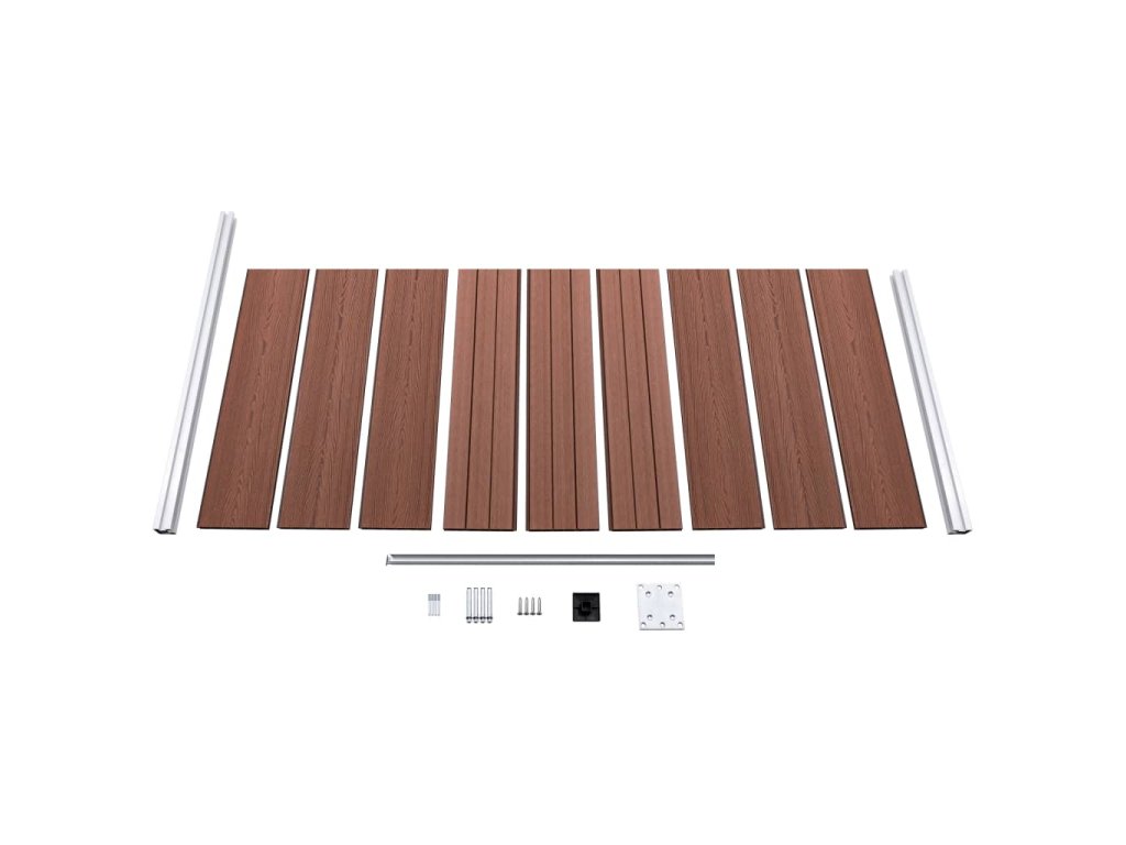 - Materiál: WPC (drevoplastový kompozit), hliník, oceľ