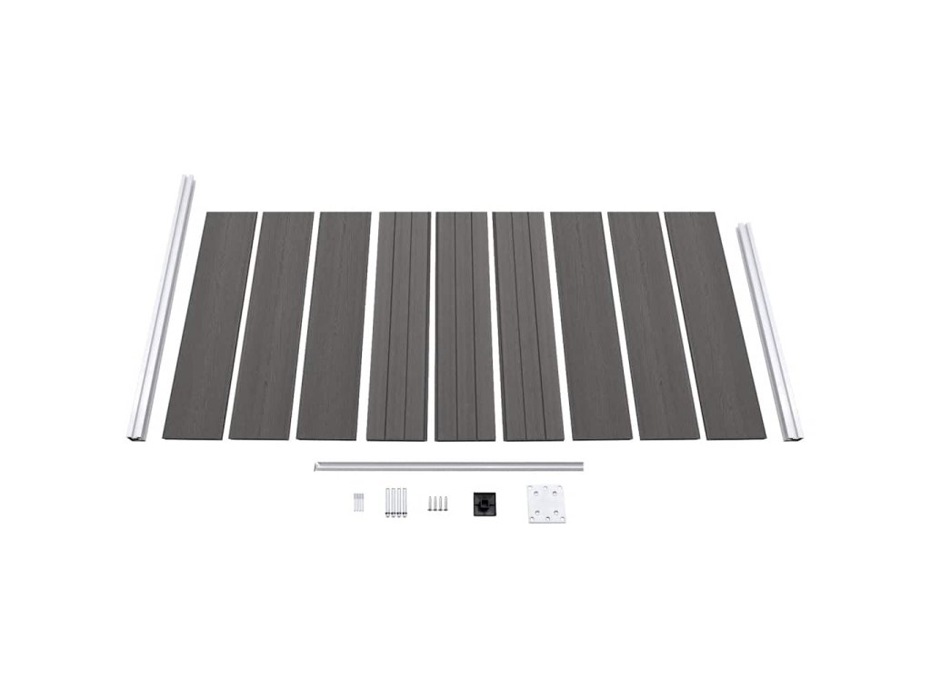 - Materiál: WPC (drevoplastový kompozit), hliník, oceľ
