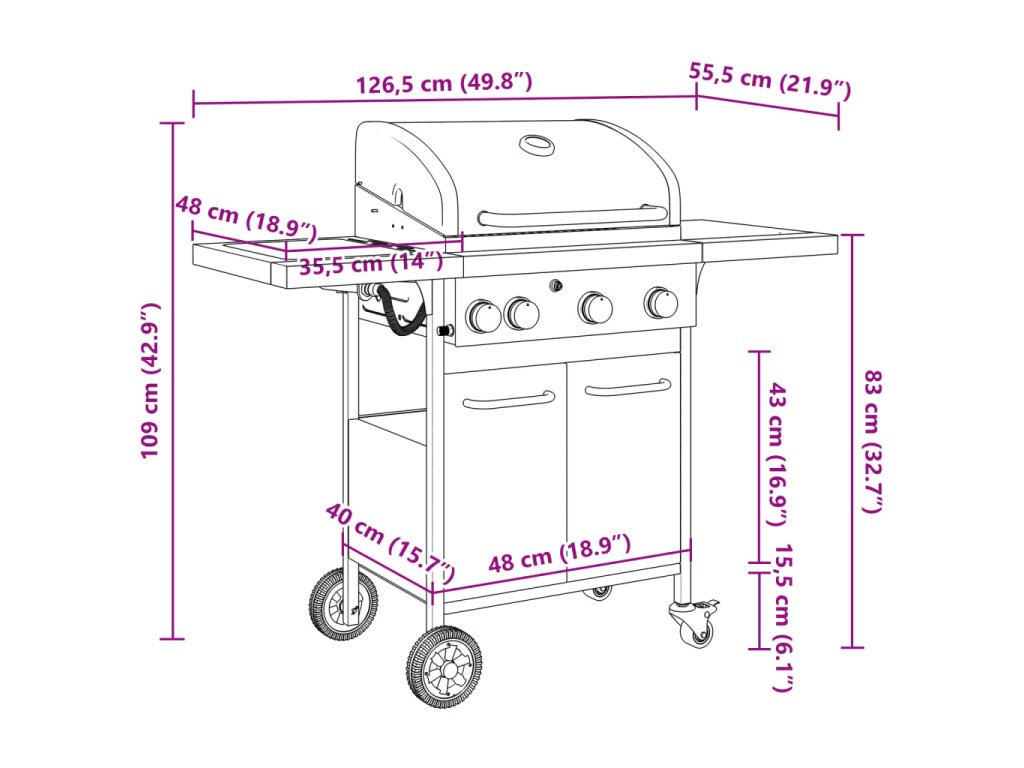 - Extra úložný priestor: Skrinka pod grilom poskytuje dostatok priestoru na uloženie kuchynských potrieb alebo náradia na grilovanie.