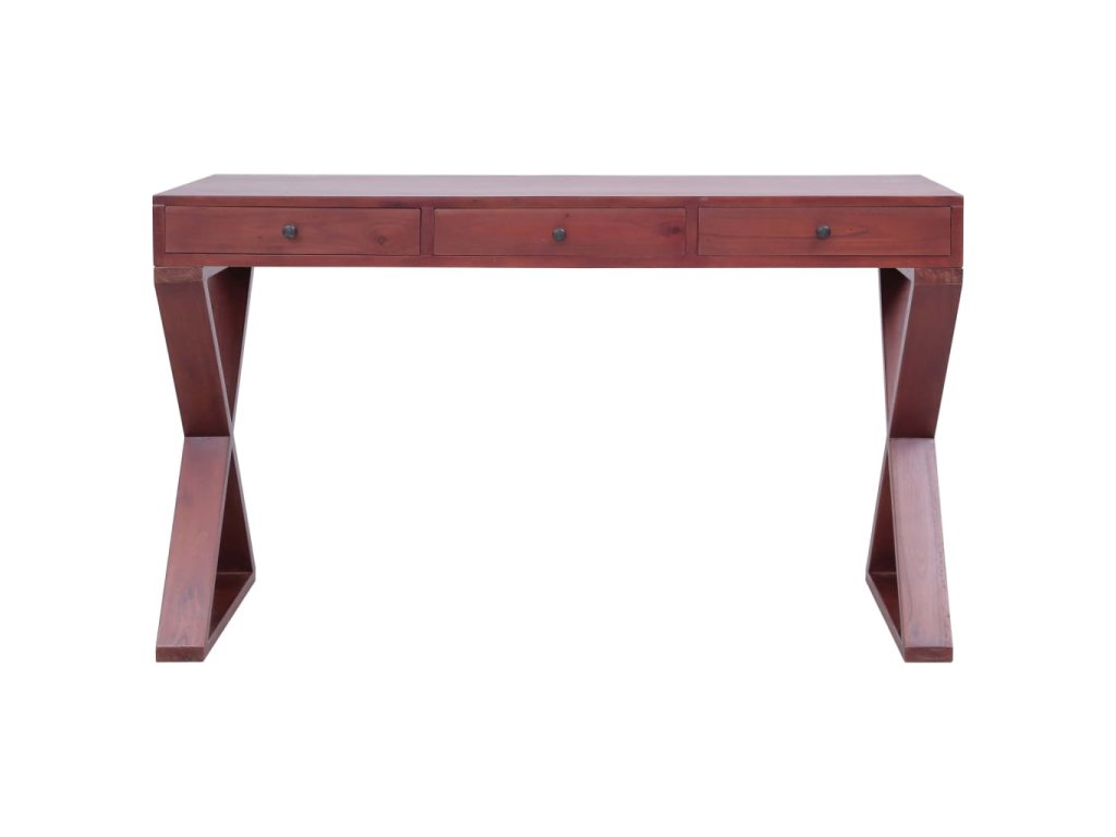 Pevný drevený stôl je mimoriadne stabilný, odolný a trvácny, pretože bol vyrobený z masívneho mahagónového dreva s klasickým hnedým povrchom. Mahagónové drevo je tropické tvrdé drevo, ktoré vyniká svojou krásou, odolnosťou a farbou. Počítačový stôl ponúka dostatok úložného priestoru vďaka 3 zásuvkám. Jednoducho sa čistí pomocou vlhkej handričky.