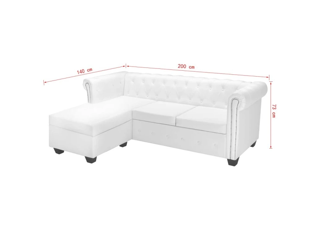 Multidom Pohovka Chesterfield v tvare L, umelá koža, biela