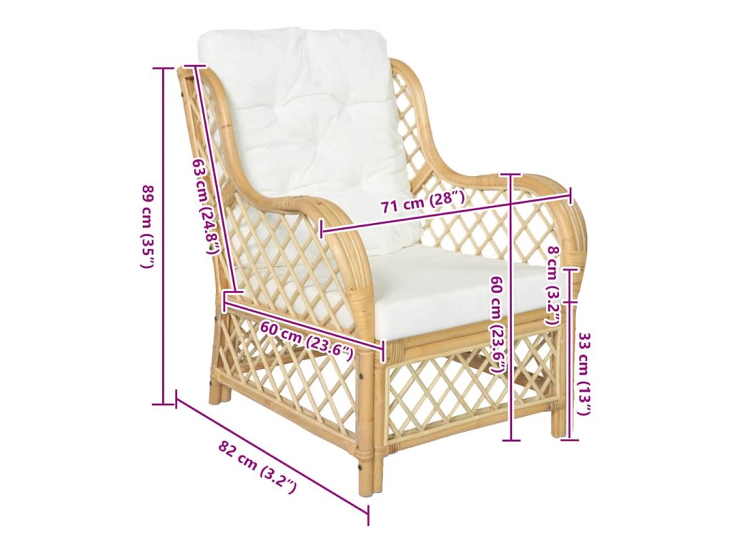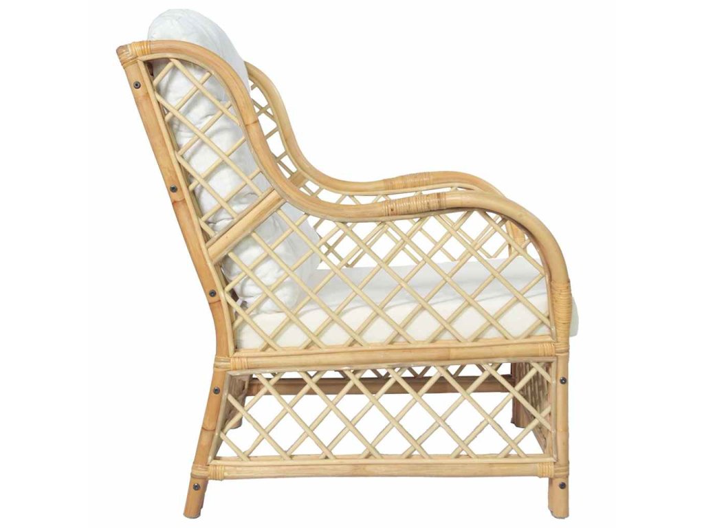 Táto stolička je vyrobená z prírodného ratanu, vďaka čomu je odolná a ľahko sa čistí. Pribalené podložky poskytujú maximálne pohodlie a pomáhajú uvoľniť telo po náročnom dni. Je ideálna pre rodinné filmové večery, hranie videohier, čítanie alebo sledovanie televízie.