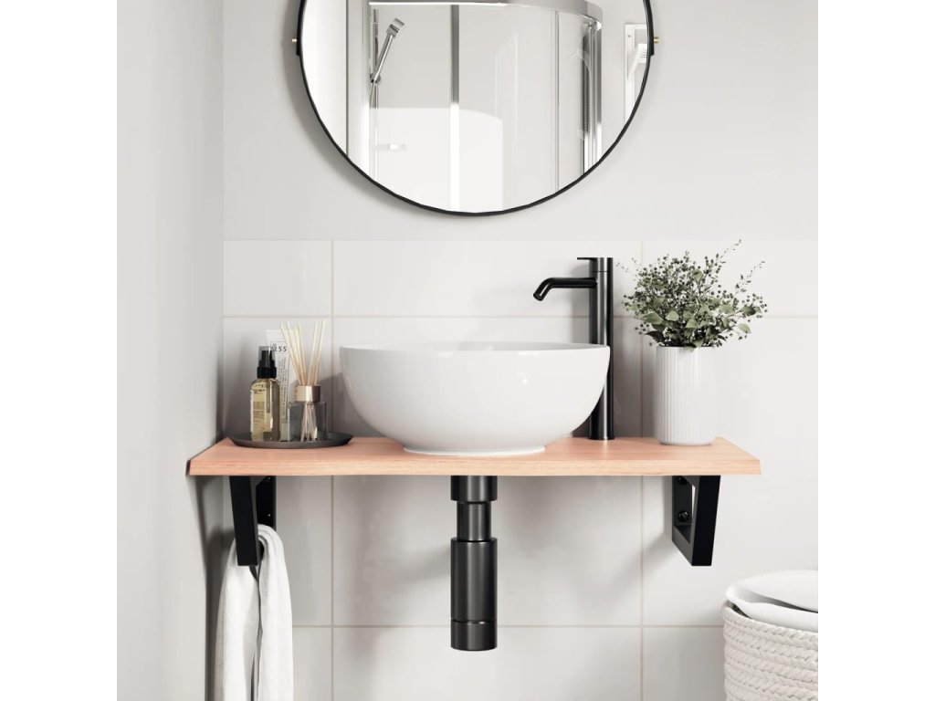 - Robustná a trvácna: Polica pod umývadlo pozostáva z oceľovej konštrukcie a dosky z dubového masívu, vďaka čomu je robustná, stabilná a trvácna.