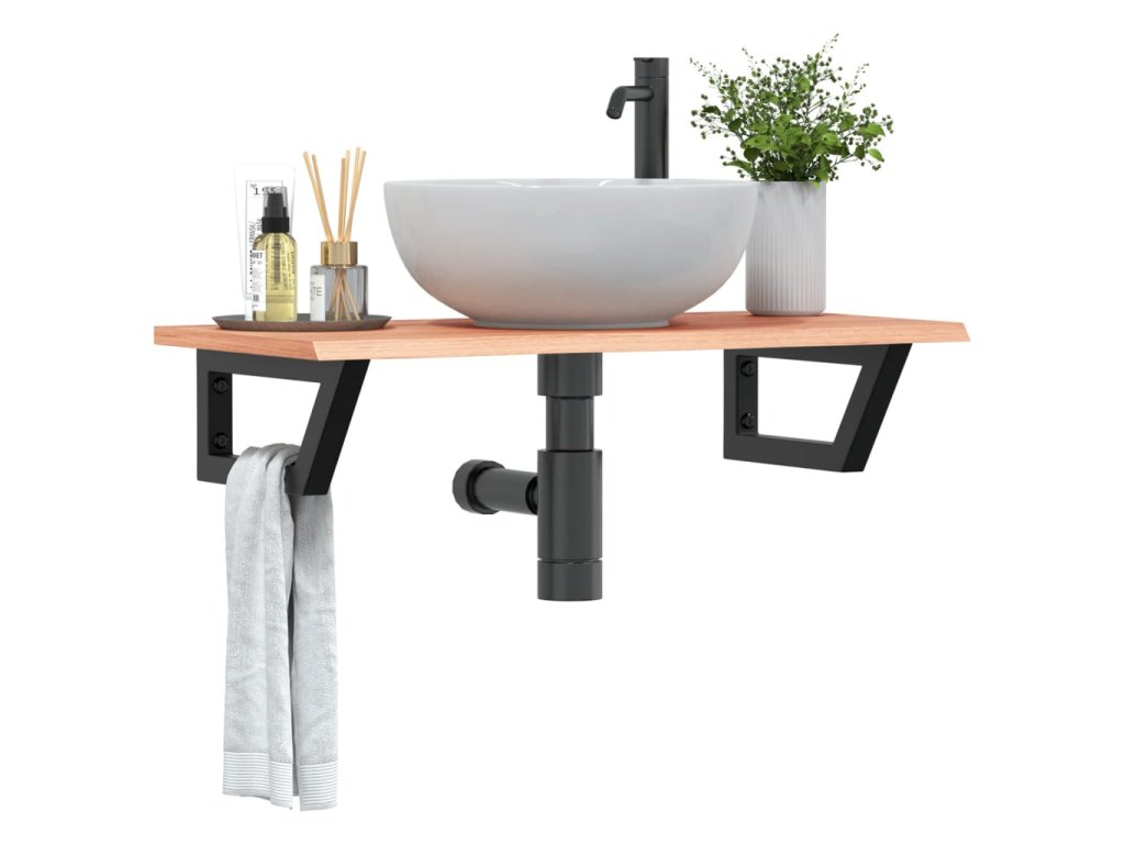 - Jednoduché používanie: Polica sa dodáva bez navŕtaných otvorov, aby ste si mohli umývadlo namontovať naľavo, napravo alebo do stredu podľa toho, ako vám najviac vyhovuje. Vďaka vopred navŕtaným otvorom sa držiak dá ľahko zmontovať s vrchnou doskou a namontovať na stenu.