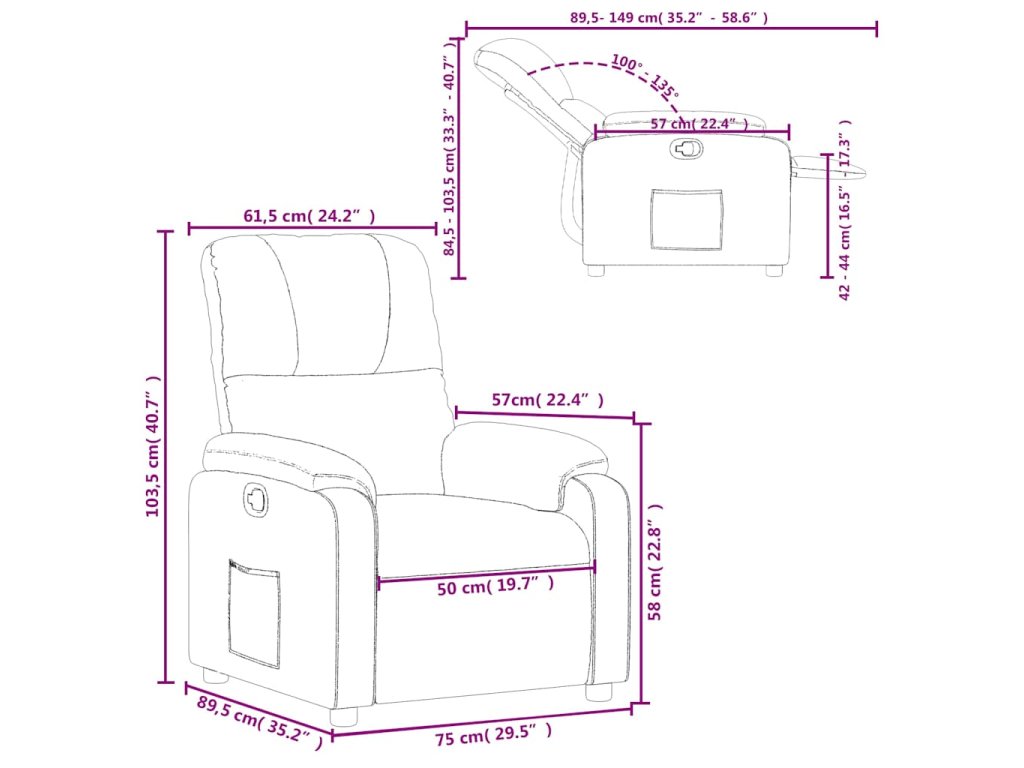 - Rozmery v polohe na ležanie: 75 x 149 x 84,5 cm (Š x H x V)
