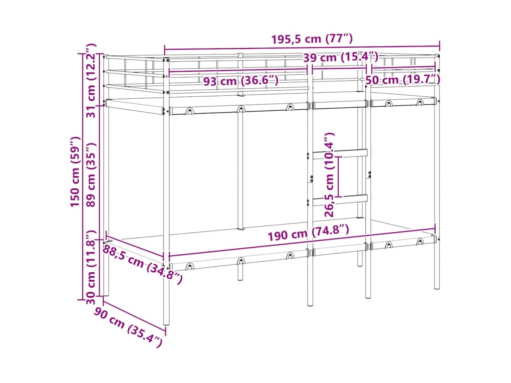 - Výška spania od zeme: 30/119 cm
