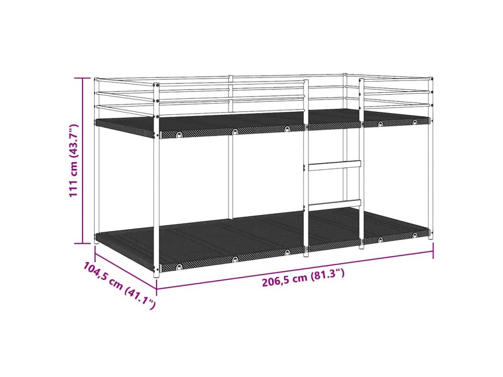 Multidom Poschodová posteľ bez matraca Čierna 100x200 cm Oceľ